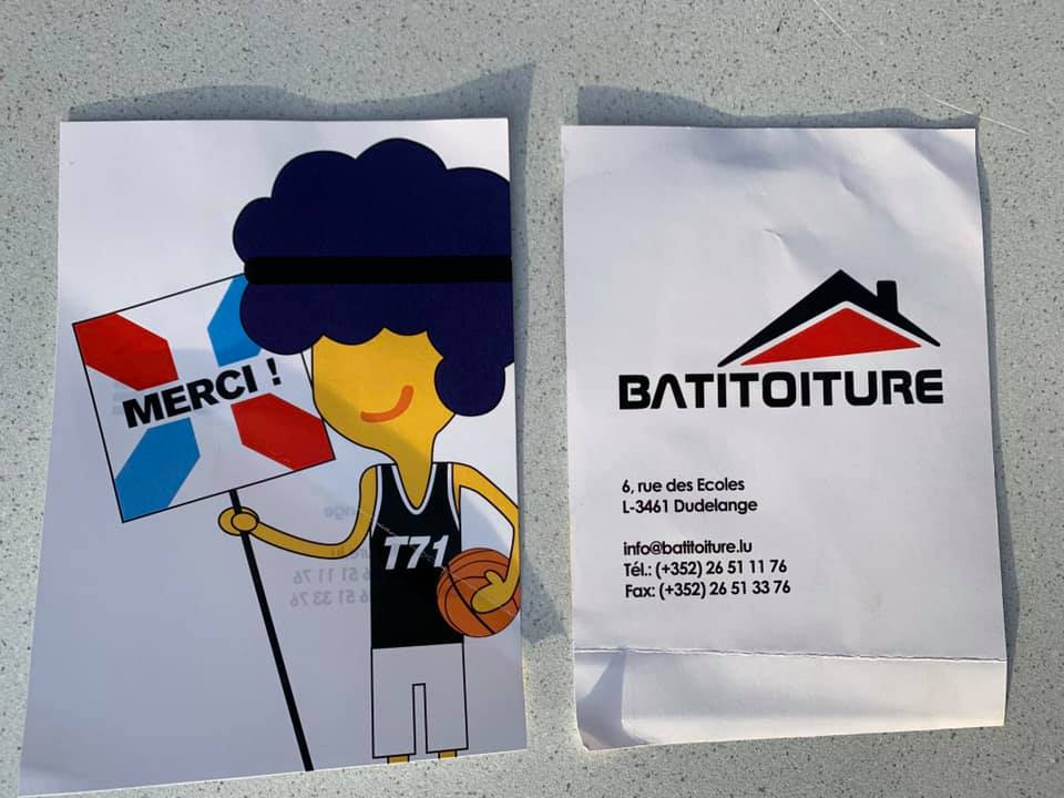 Vir deenen jonke Spillerinnen an Spiller, déi sech awer elo gefreet haten ze trainéieren, awer en Basketfeeling ze ginn huet d'Jugendkommissioun konnten mat Hëllef vum Sponsor Batitoiture deem mir hei en groussen Merci wëllen soen, trotzdeem en Hoodie an en T-Shirt drécken gelooss mat «Save the PRE-SEASON-CAMP 2020». Wat een super Geste vum Sponsor well obwuel näischt réëll konnt stattfannen ass esou d'Gefill bliwwen zesummen ze gehéieren an gemeinsam duerch d'Kris ze goen déi eis nach méi laang sollt beschäftegen.